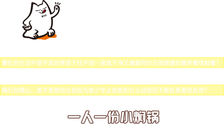 燜鍋開店有程序可依,制作過程標準化,經總部培訓無需廚師便可以操作,投入適中、市場需求巨大。